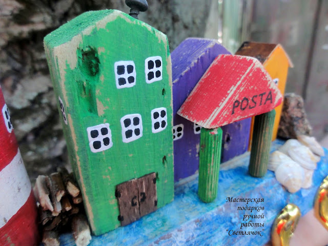 Была вот такая ключница в виде очередной рыбацкой деревушки - уж очень полюбилось мне их творить, такое релаксирующее занятие!
